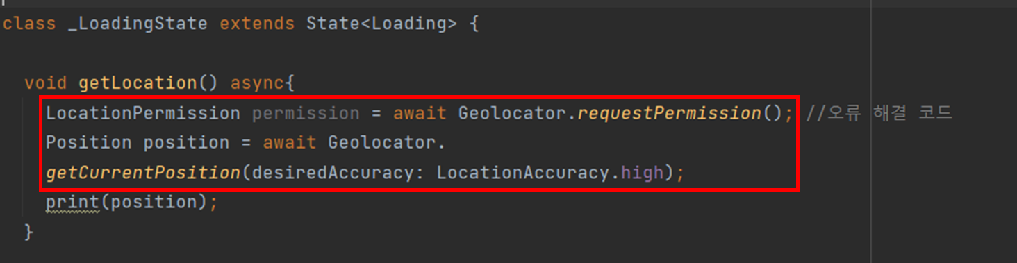 3. 위치 정보 가지고 오기(https://pub.dev/packages/geolocator)